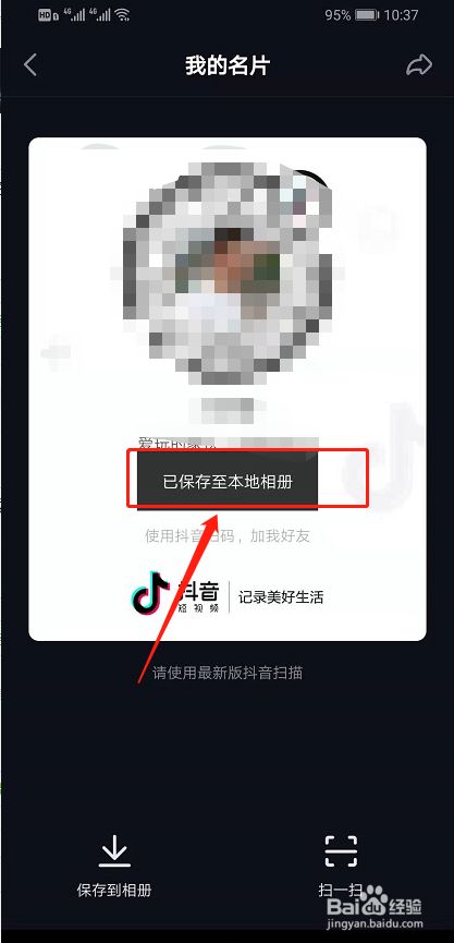 在个人名片中就是抖音的一个二维码,如果需要保存,点击“保存下载”按钮