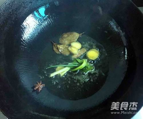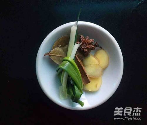 2加淹没的猪手的水,放入生姜和香葱加一勺料酒煮开后关火洗净血沫