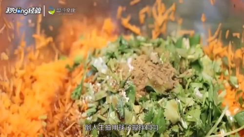 1胡萝卜刮成丝,香菜切碎,放到胡萝卜里。