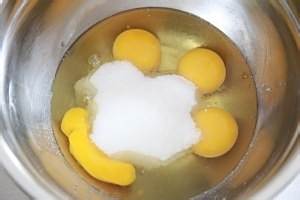 打蛋器使用低速,将白砂糖和蛋液大致混合均匀。