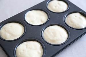 准备模具,用刷子在底部及边缘刷上一层食用油,这样方便脱模,然后将搅拌好的面糊倒入模具中,面糊到入的不要过满,8分满左右就可以了,烤制是面糊还会膨胀。