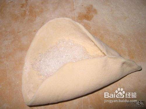 在擀好的面皮上倒上糖,白糖红糖都可以,根据自己的需要来。