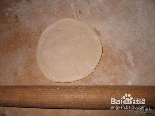 取出适量面团,用擀面杖把面团擀成圆的面皮。