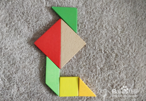 在黄色三角形右侧,放上橙色三角形挨着,如图。这样就拼好了。