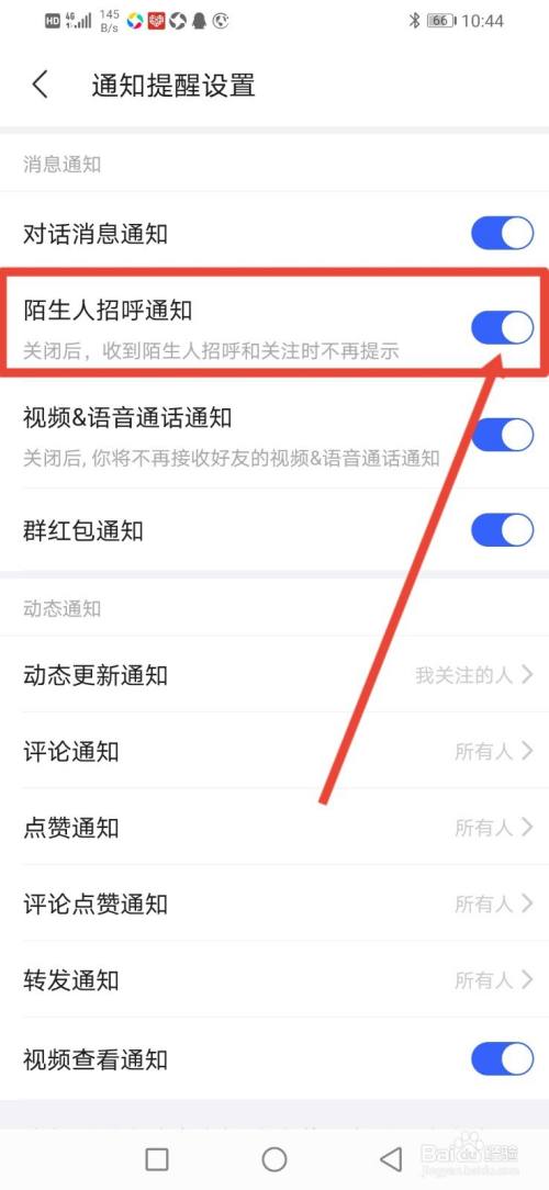 进入通知提醒设置,然后把【陌生人招呼通知】的按钮关闭即可。