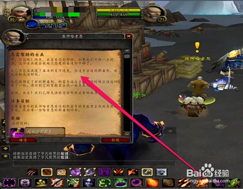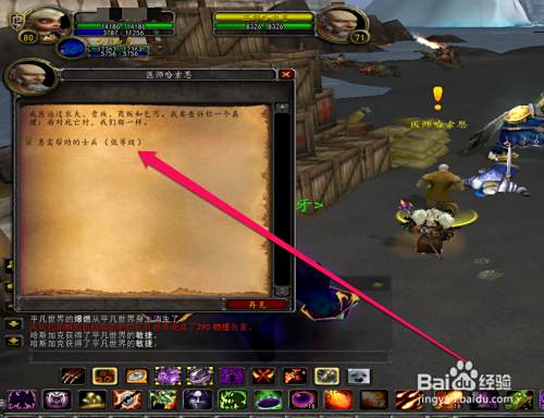 我们在联盟的无畏要塞门口,看到一些受伤的士兵,这个时候,就可以接到一个急救的任务。