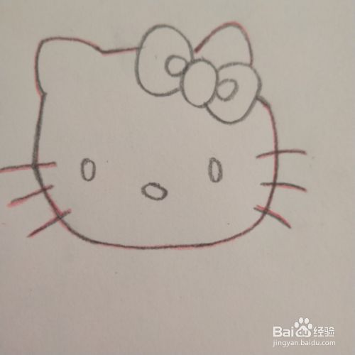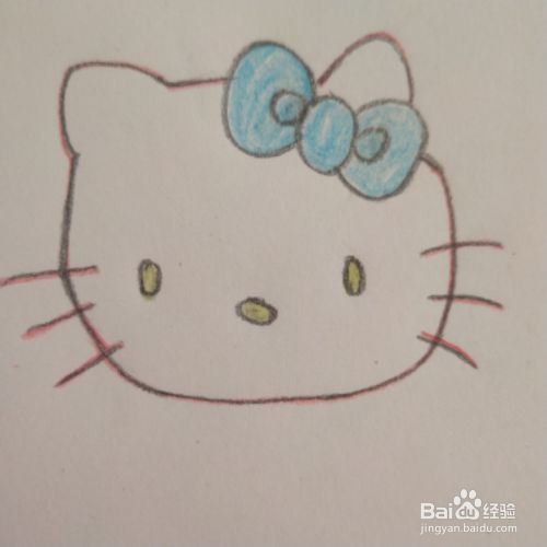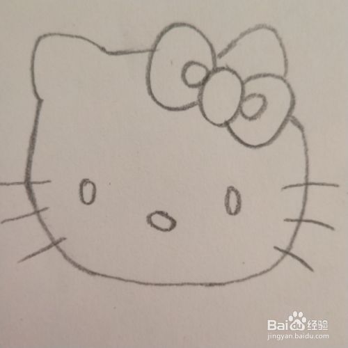 如图,画出猫脸两侧的猫须,一边画上三根就可以了。