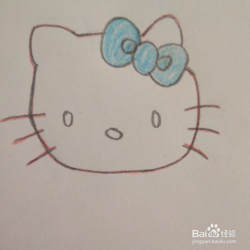 如图,用蓝色彩铅笔把猫儿的蝴蝶结涂上颜色。