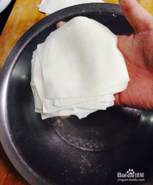 混沌皮做好后不是装在塑料袋里,就要放在盆里面,避免它水分流失,如果放在盆里面,边上就要滴上些水,防止面皮变干。