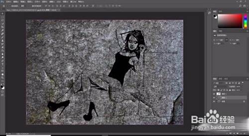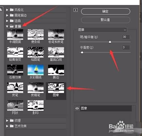 如果图片背景非常复杂,则需要进行抠图,而这张图不需要抠图处理,我们将前景色设置为黑色,然后执行滤镜-滤镜库-素描-图章