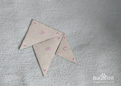 把C放在B的右侧挨着,1在左,2、3在右,C2挨着B2,如图。