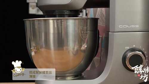 2高筋面粉加鸡蛋,纯牛奶,玉米油,白砂糖,酵母和盐,搅成絮状,揉至出薄膜。