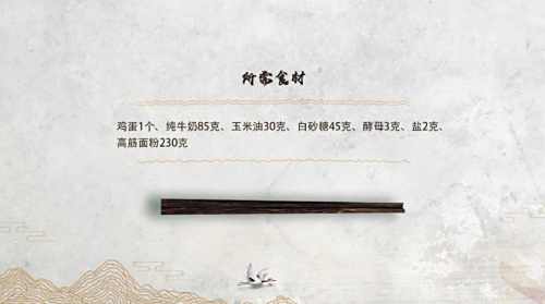 1准备食材,鸡蛋一个,纯牛奶85克,玉米油30克,白砂糖45克,酵母3克,盐2克,高筋面粉230克。