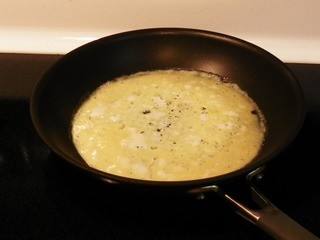 蛋打散,加1汤匙水,盐1/8茶匙、胡椒粉1/8茶匙,再打至均匀,放在平底锅里煎成薄饼,再切成丝