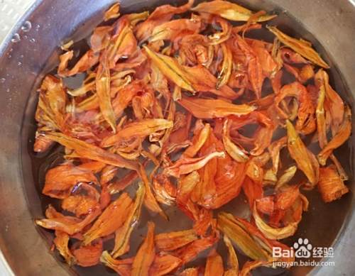 最后在上面摆上一点儿煮好的百合花,再淋上一勺糖桂花就可以享用了。