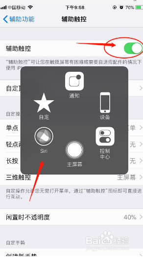 点击辅助触控,打开悬浮窗即可。