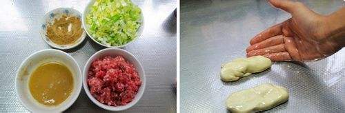 准备原料,牛肉饼必备的“四大金刚”,油酥,牛肉,葱花,香料粉(花椒粉和五香粉2:1)