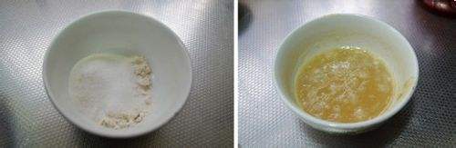 碗中加面粉和盐适量泼热油制作油酥,盐可以一次加足