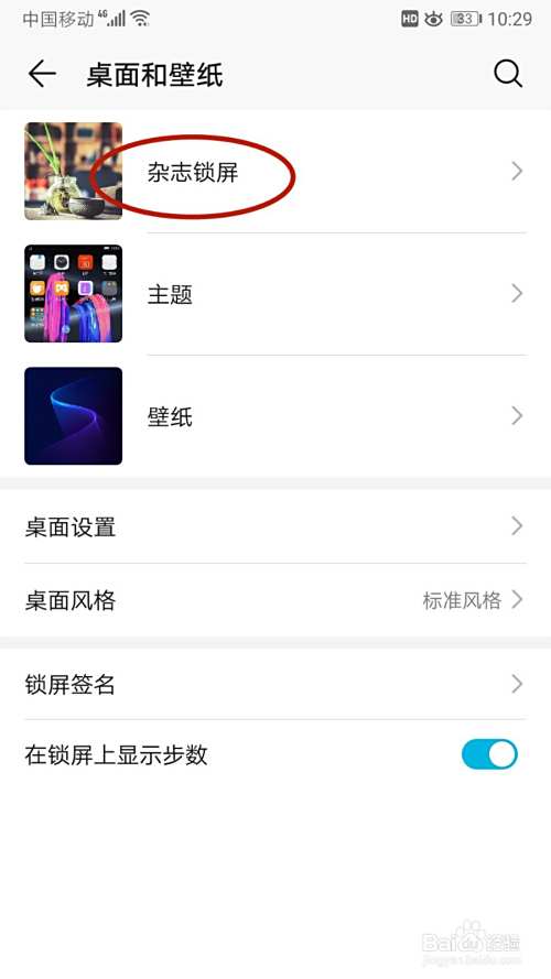 随后进入桌面和壁纸的页面点击【杂志锁屏】选项