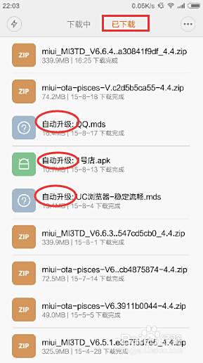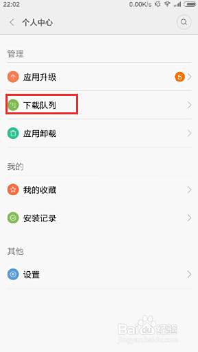 到“个人中心”界面后,你可以手指点击“下载队列”,在已下载的界面中好多应用都是自动升级的。