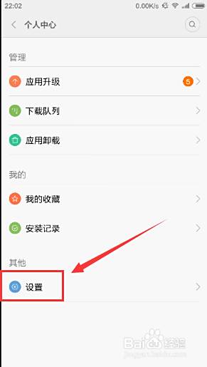 返回到“个人中心”,手指点击“设置”,会进入到新的设置界面,在设置界面中,你会看到有个自动升级是打开的,下面一行小字也提示WLAN网络下,锁屏时自动升级。我们只要关闭它,手机就不会自动升级应用了。