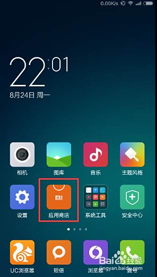 首先,打开小米手机,在手机界面上找到“应用商店”,手指单击点开。
