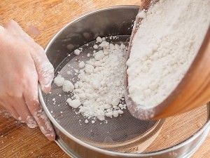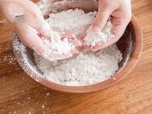 粘米粉和糯米粉和糖一起搅拌均匀,加入水,用手搓成粉粒状。