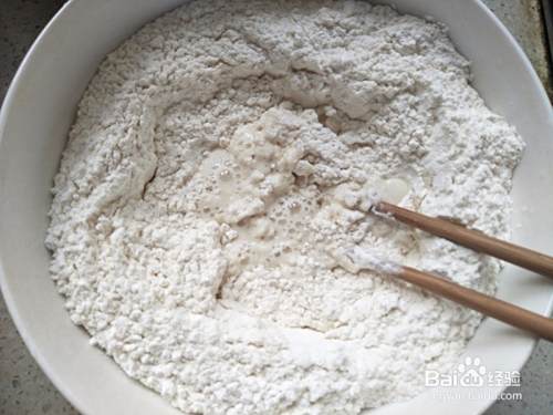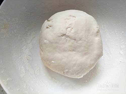 把适量面粉倒入容器中,加入清水搅拌,再揉成面团,让其静置一会