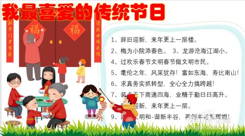 最后,我们要用水性笔添加内容;这一幅“我最喜爱的传统节日”手抄报就完成啦~