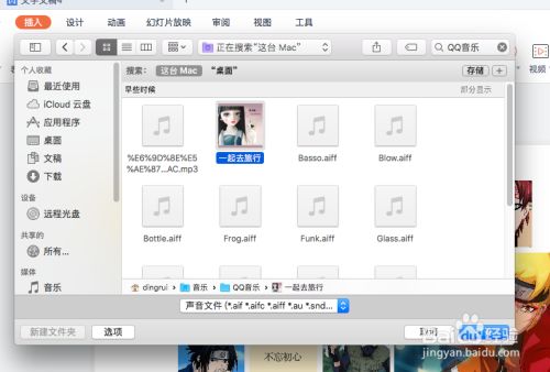 第一步、打开PPT文件,翻到指定页面,然后在菜单栏中选择插入——音频——音频文件。