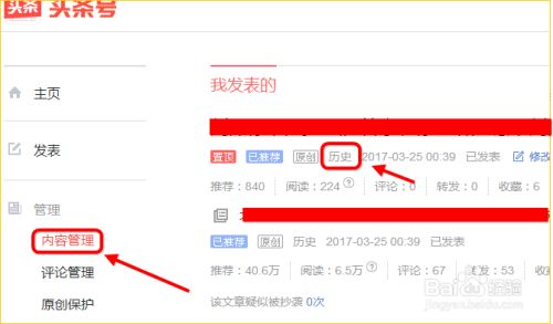 发表文章比较多的,可以使用【今日头条】新推出的筛选功能。首先把范围圈定到【已发表】,然后输入关键词进行查找。