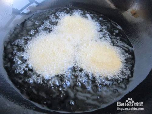 炸到一面发硬发黄,翻面继续炸,炸到两面金黄色捞起沥油。
