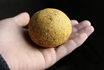 到钓场以后伴上大量麸子、苞谷面,揉成团,一次投入你需要的量就可以做窝了,然后直接穿钩施钓