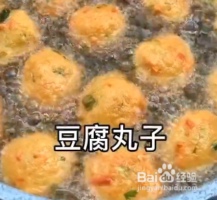 豆腐压碎,放入鸡蛋、葱姜蒜末、胡萝卜丁、火腿丁、香菜末、盐、鸡粉、胡椒粉、生抽、面粉,拌匀