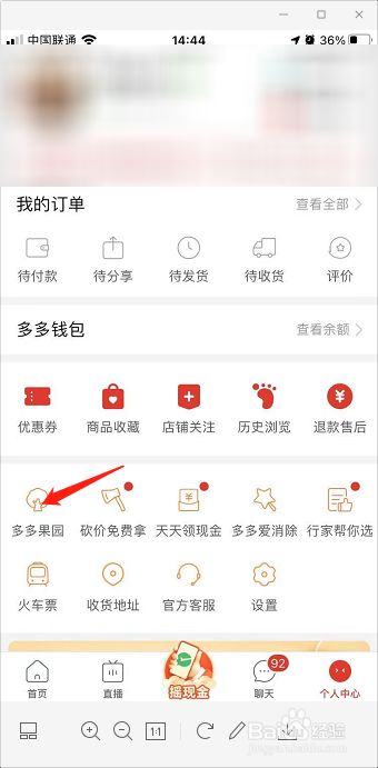进入多多果园后,点击左下角摇钱树领红包选项。