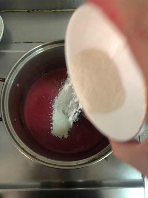 4葡萄糖融化后加入果胶粉搅匀,注意不用煮沸,看不见明显的果胶粉就可以关火了