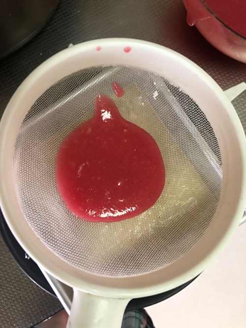 5稍微晾凉后即可过筛到冻硬的布蕾层(见另一个食谱)上