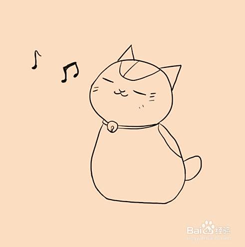 小猫迷离的眼睛配上音乐符号,画上简单的音乐符号。