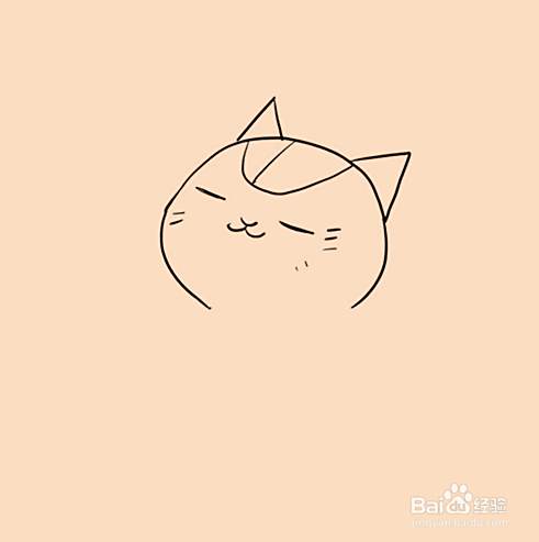 然后开始画小猫迷离的眼睛,画一条线即可,再画出鼻子以及两边的胡须。