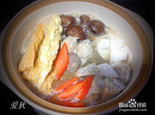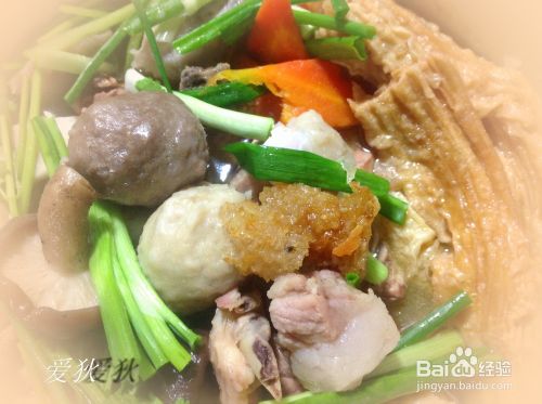 主要食材是鸡肉,烧肉,和牛肉丸,这个可以根据个人喜好随意搭配的,不过这道菜的做法比较适合肉类,不适合海鲜