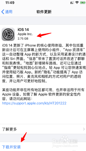 之后会看到iOS14更新选项,如下图: