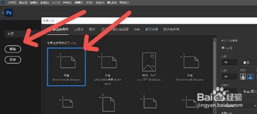 第一步:打开PS,在主界面选择新建,任意选择一块画布,点击进入