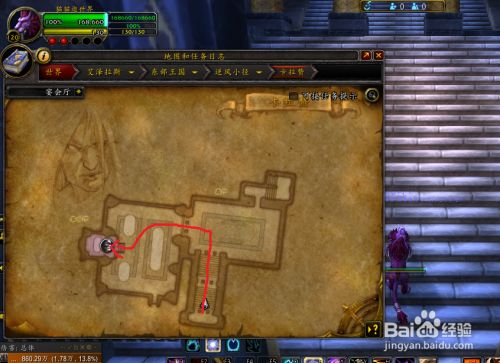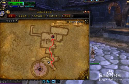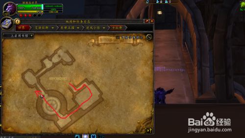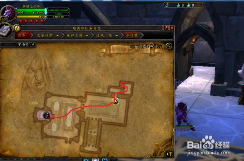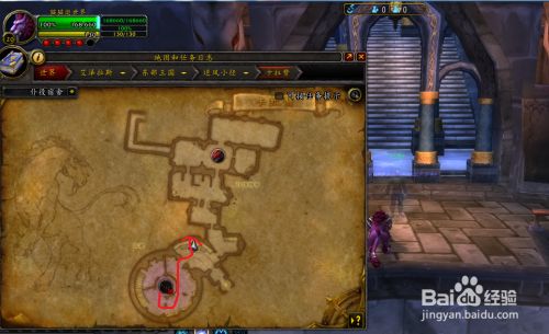 卡拉赞位置在逆风小径,联盟可以通过暴风城飞过去,部落可以飞荆棘谷营地然后飞上来。副本入口在地图的下方,图中我所在的位置。