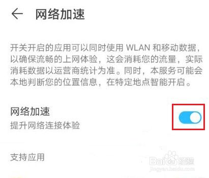 进入移动网络界面,点击网络加速进入。