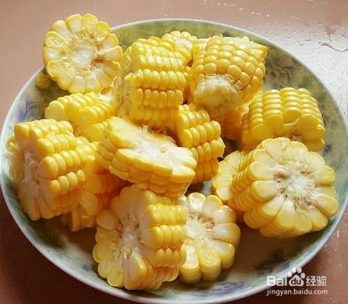 玉米剥掉外壳,须。洗净,斩小段。备用。
