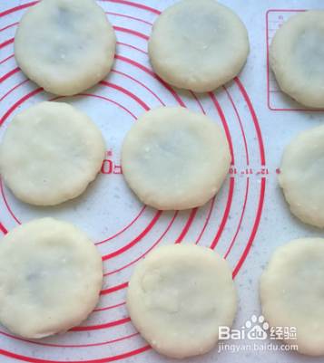 翻个面,收口冲下,用手掌轻轻按扁,成为一个中间厚、边缘薄的圆形小饼。