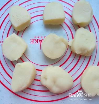 把面团揉匀搓成条,揪成大约60克左右的小剂子,想吃大的油炸糕就把剂子做的大一些,想吃小的剂子就做得小点儿,50克——100克都可以。