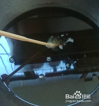锅里放油,稍微多一点儿,小火烧到油温5成热,大约150度,有温度计的小伙伴可以测量一下。那如果没有温度计,也不会观察油温怎么办?没关系,你还可以用一根筷子来测试油温,把筷子插到油中,筷子周围有小小的气泡慢慢冒出来,这样的油温就合适了。