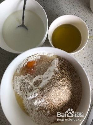 将面粉、鸡蛋、酵母、白芝麻、白糖、牛奶进行混合搅拌.