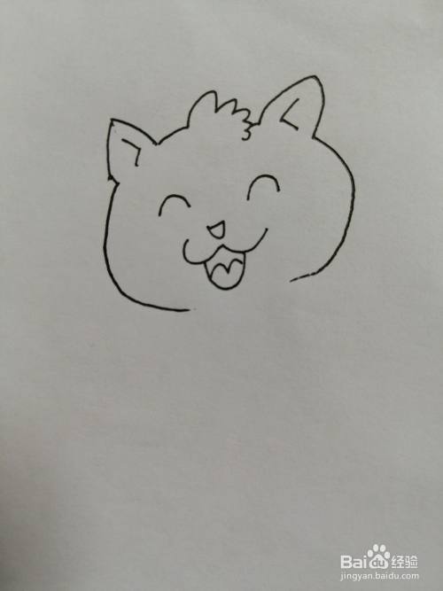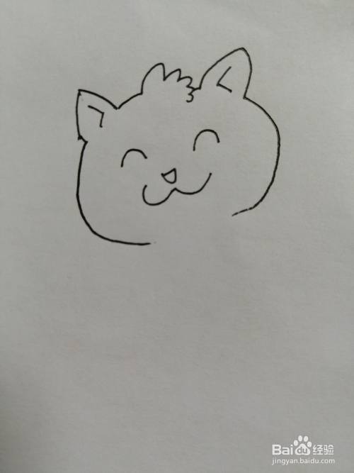第二步,接着在可爱的小猫咪的椭圆形的头部里面画出弯弯的眼睛。